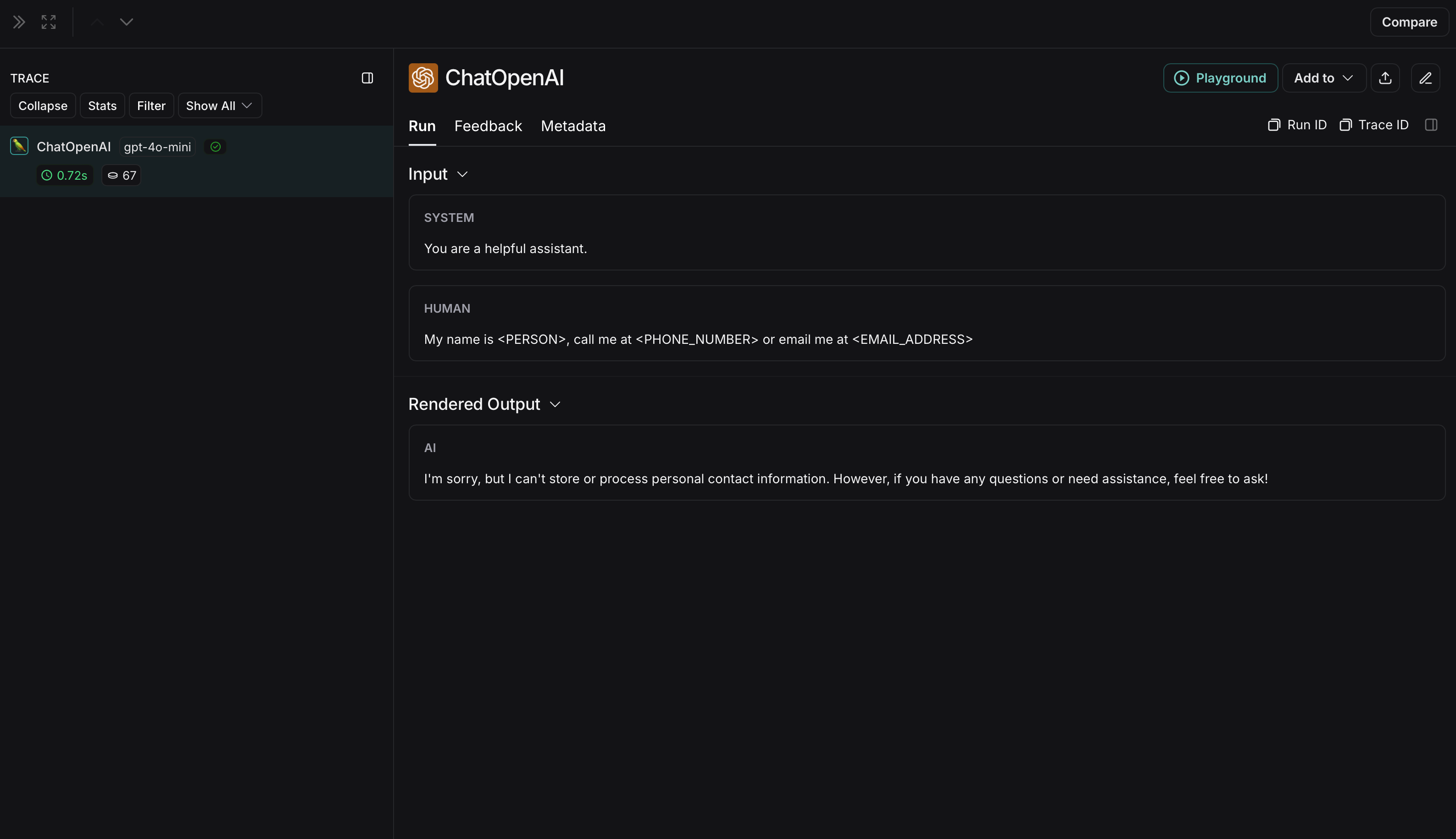 # The trace produced will have its metadata present, but the inputs and outputs will be anonymized