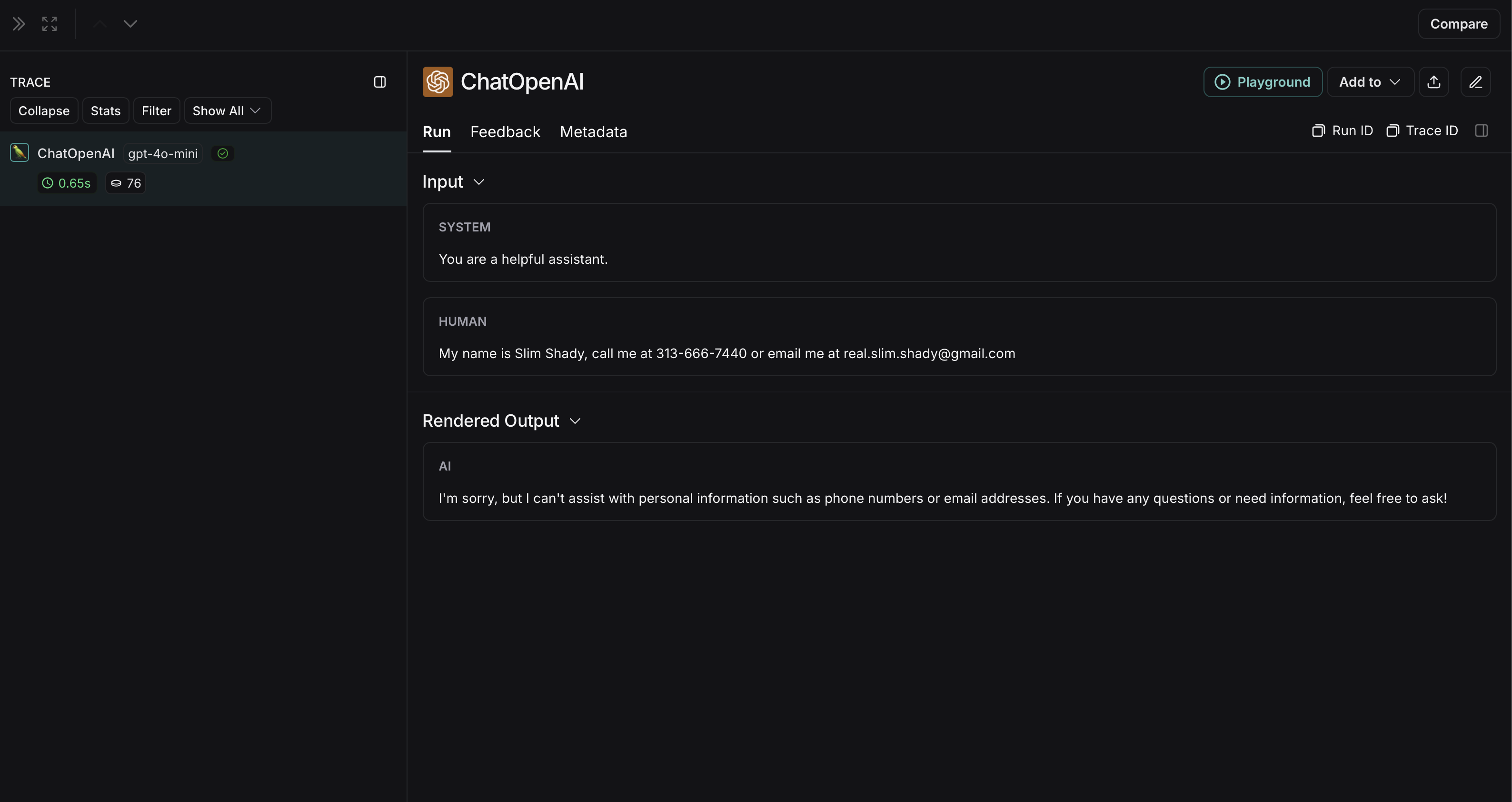 Comprehend is a natural language processing service that can detect personally identifiable information. The implementation below uses Comprehend to anonymize inputs and outputs before they are sent to LangSmith. For up to date information, please refer to Comprehend's official documentation.